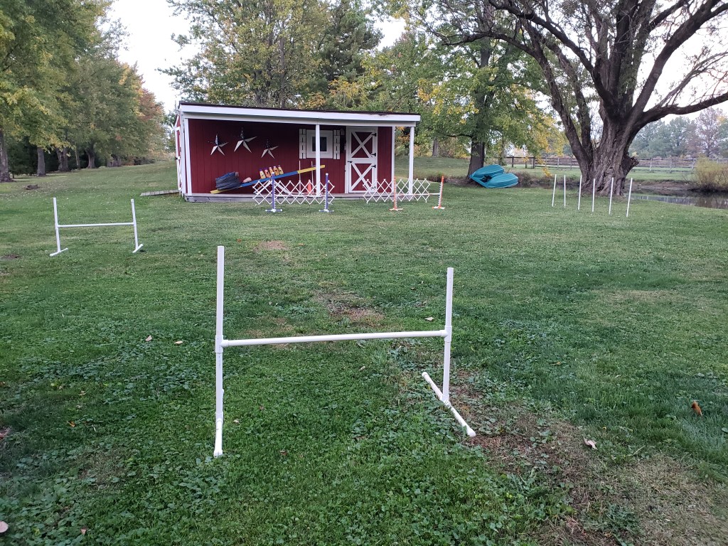 I also got to set up a several obstacles in the yard to work with Kaiden. I am trying to teach him to collect and not jump so big. I am trying to teach him lateral sends. He is so darn smart. I just need to move faster & smarter!!